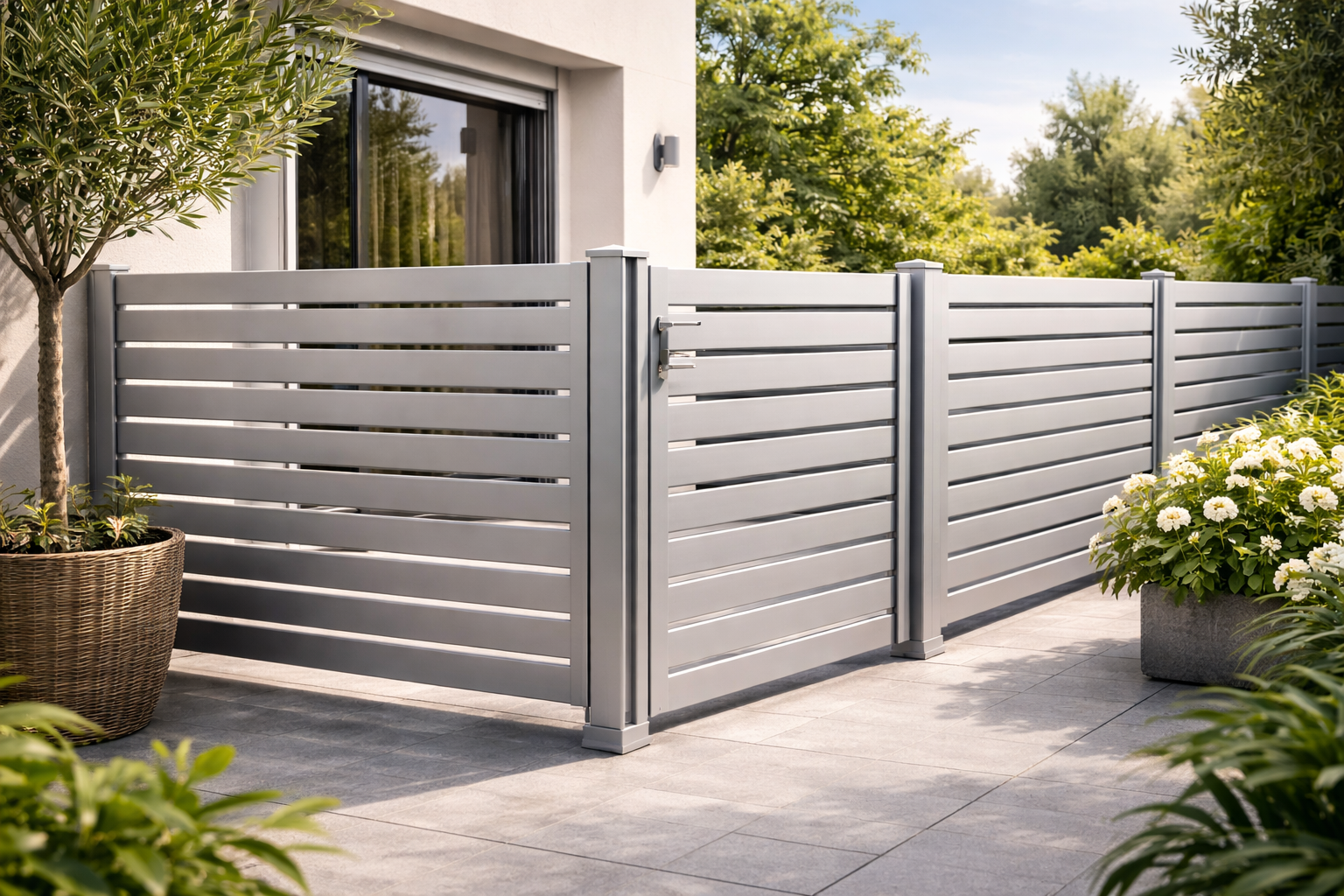 Τα κάγκελα από αλουμίνιο μπορούν να συνδυαστούν με αυλόπορτες, προστατευτικά παράθυρων (καμπυλωτά και ίσια) κλπ.