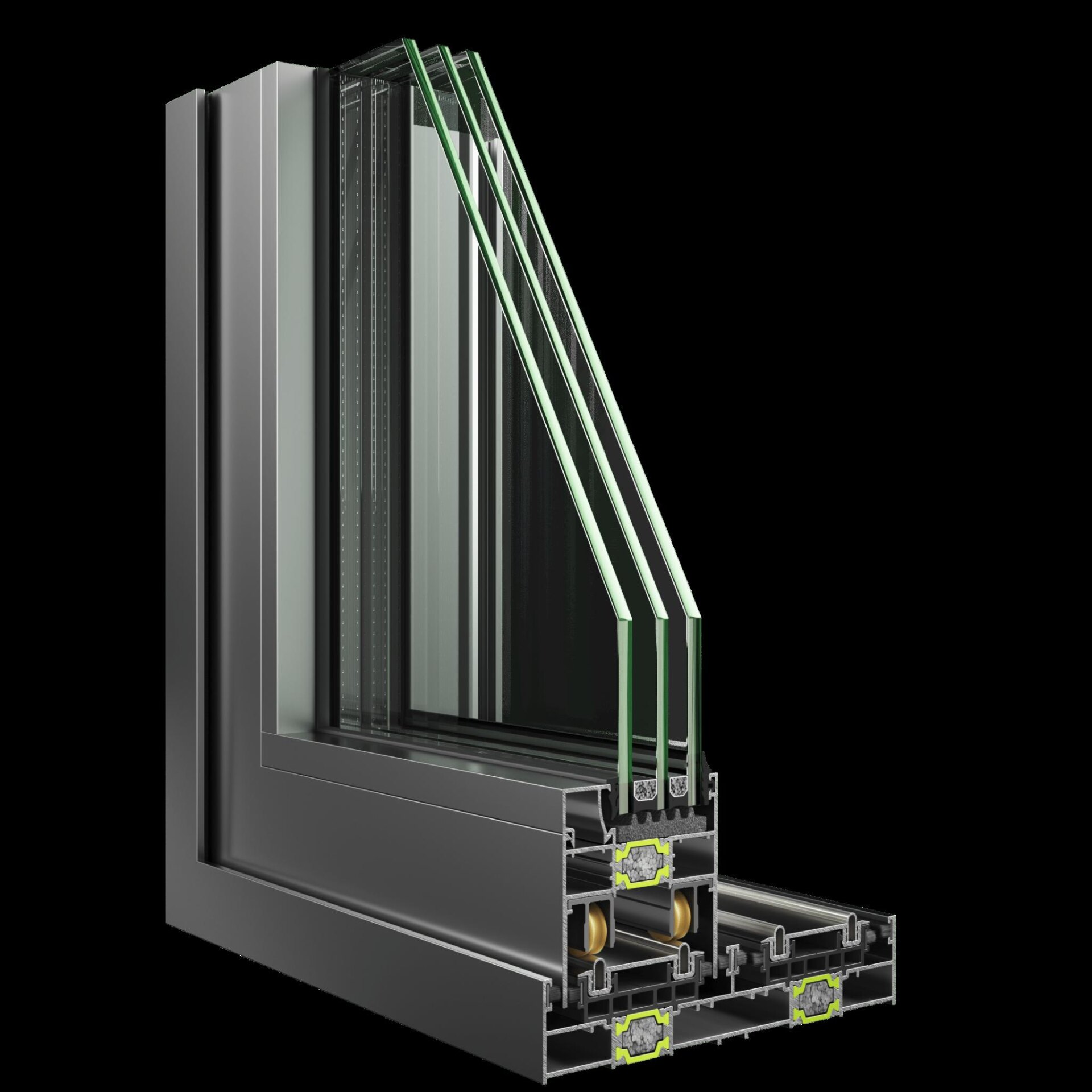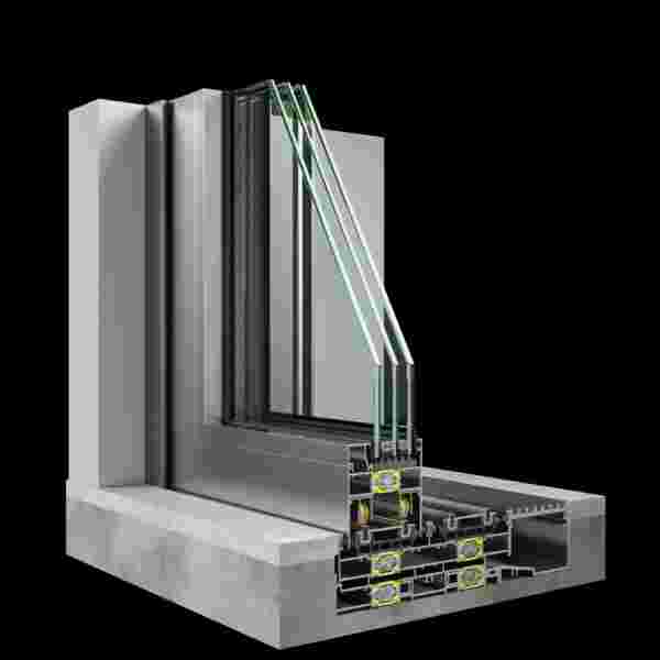 • Θερµοµονωτικές µπάρες εσωτερικά των θαλάµων όλων των προφίλ συµπεριλαµβανοµένου και του γάντζου για ακόµα υψηλότερη θερµοµόνωση.