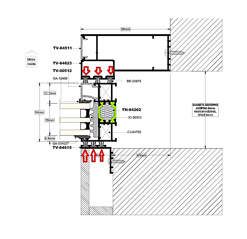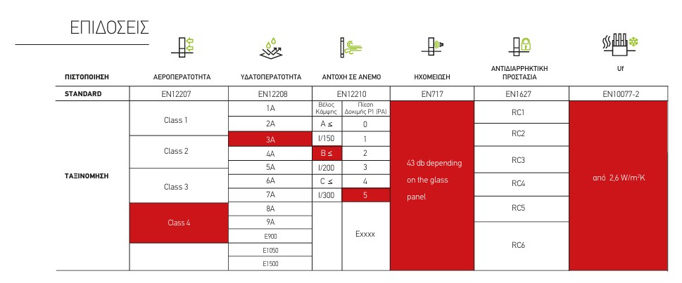 • Θερμομονωτικές µπάρες εσωτερικά των θαλάµων όλων των προφίλ συµπεριλαµβανοµένου και του γάντζου για ακόµα υψηλότερη θερµοµόνωση.
