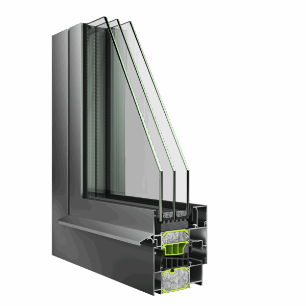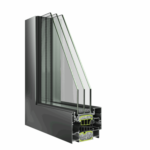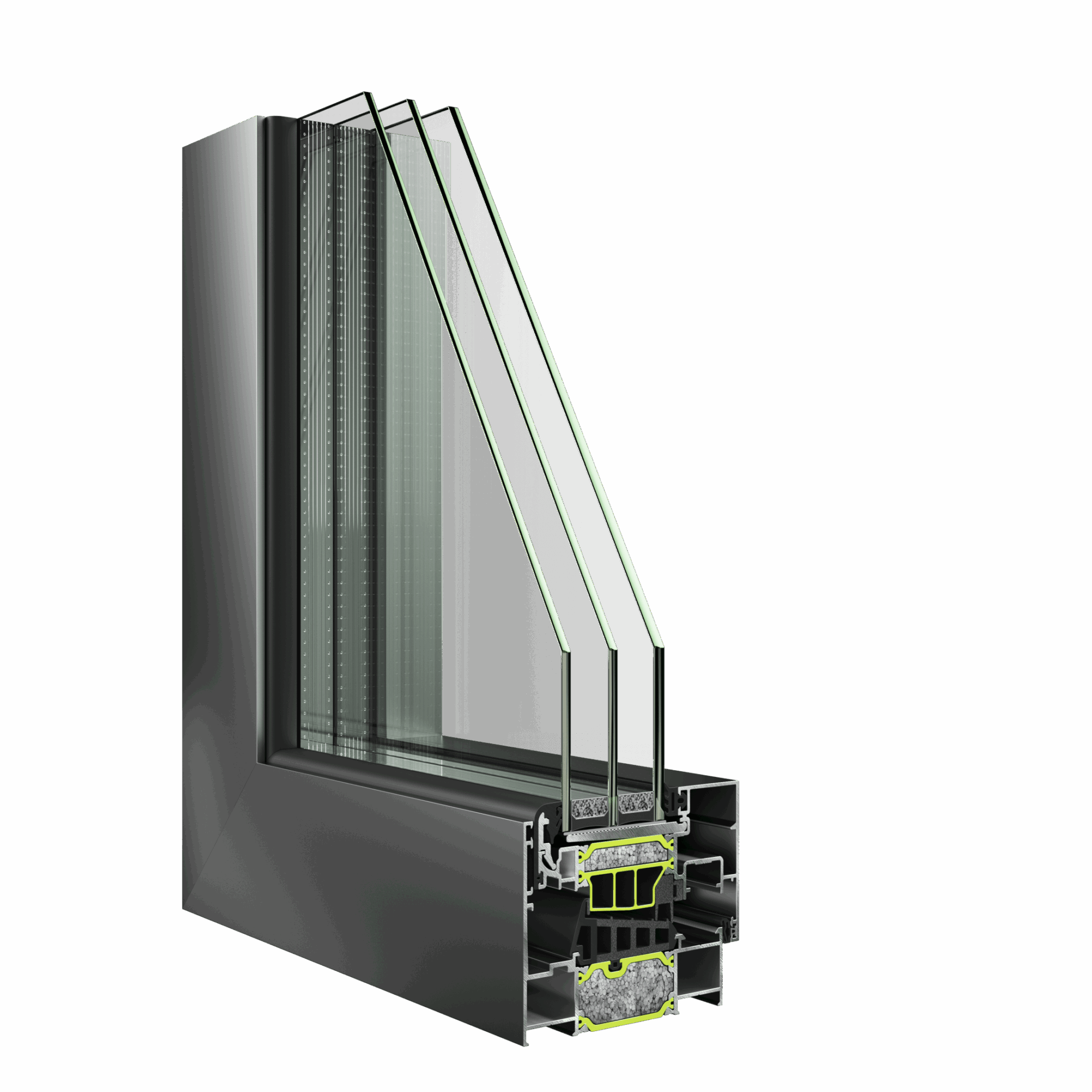 - Στην E 78 τοποθετείται πρόσθετη μόνωση περιμετρικά των υαλοπίνακων για αποφύγη θερμογέφυρας ανάμεσα στον υαλοπίνακα και το προφίλ.