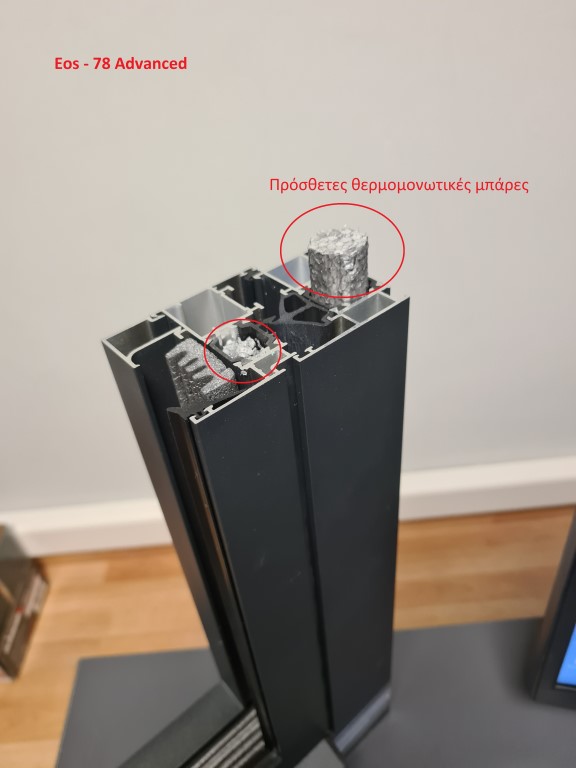 - Η Eos 78 Hybrid κατασκευάζεται σε απλή ή advanced εκδοχή ( EOS-78 Advanced ) με την προσθήκη είδικών θερμομονωτικών υλικών ανάμεσα στα προφίλ αλουμινίου
