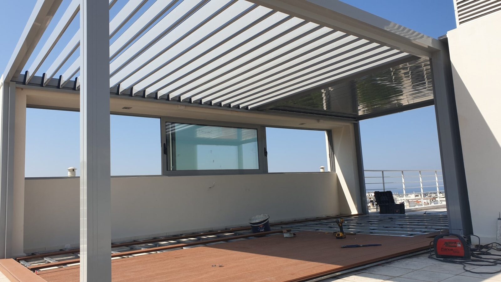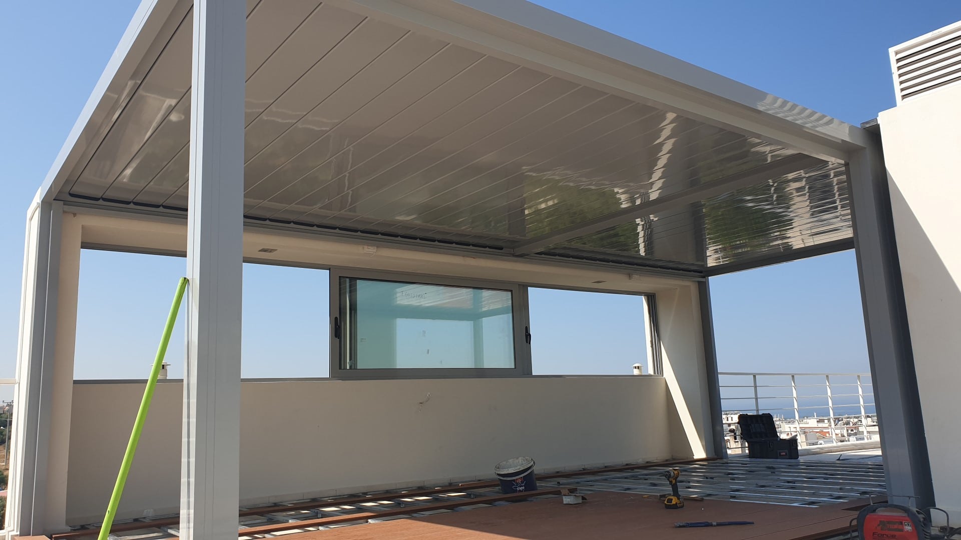 Πέργκολες αλουμινίου με κινητά πτερύγια για προστασία από την βρόχη