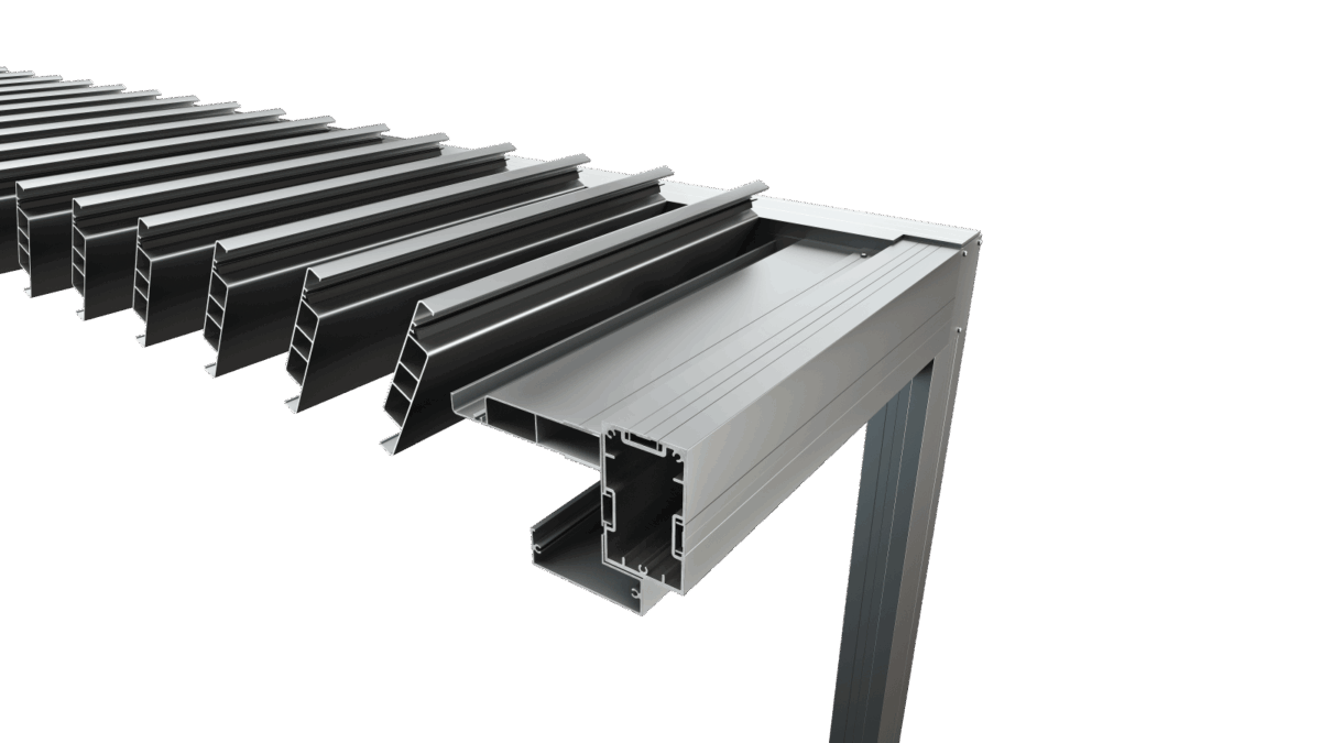 Οι Πέργκολες αλουμινίου με κινητά πτερύγια κατασκευάζεται εξ’ολοκλήρου απο προφίλ αλουμινίου της Europa . Διατίθεται με κινούμενα πτερύγια σκίασης 200 mm άλλα και 151mm . Τα οποία στρέφονται με τη χρήση μοτέρ . Με την επιλογή κλίσης των πτερυγίων σκίασης, ο χρήστης μπορεί να ρυθμίσει τη σκίαση του χώρου, όπως αυτός επιθυμεί. Επίσης, η στρέψη των πτερυγίων σκίασης μπορεί να γίνει και με χειροκίνητο τρόπο, με τη χρήση μανιβέλας.Οι πέργκολές αλουμινίου μπορούν να βαφτούν σε οποιαδήποτε απόχρωση θέλετε. Με τα πτερύγια σκίασης σε κλειστή θέση, η πέργκολα παρέχει προστασία από το νερό της βροχής. Η απομάκρυνση του νερού της βροχής από το χώρο κάλυψης της πέργκολας, γίνεται με ειδικό προφίλ νεροσυλλέκτη (υδρορροή).Μπορούν να βαφτούν σε οποιοδήποτε χρώμα.