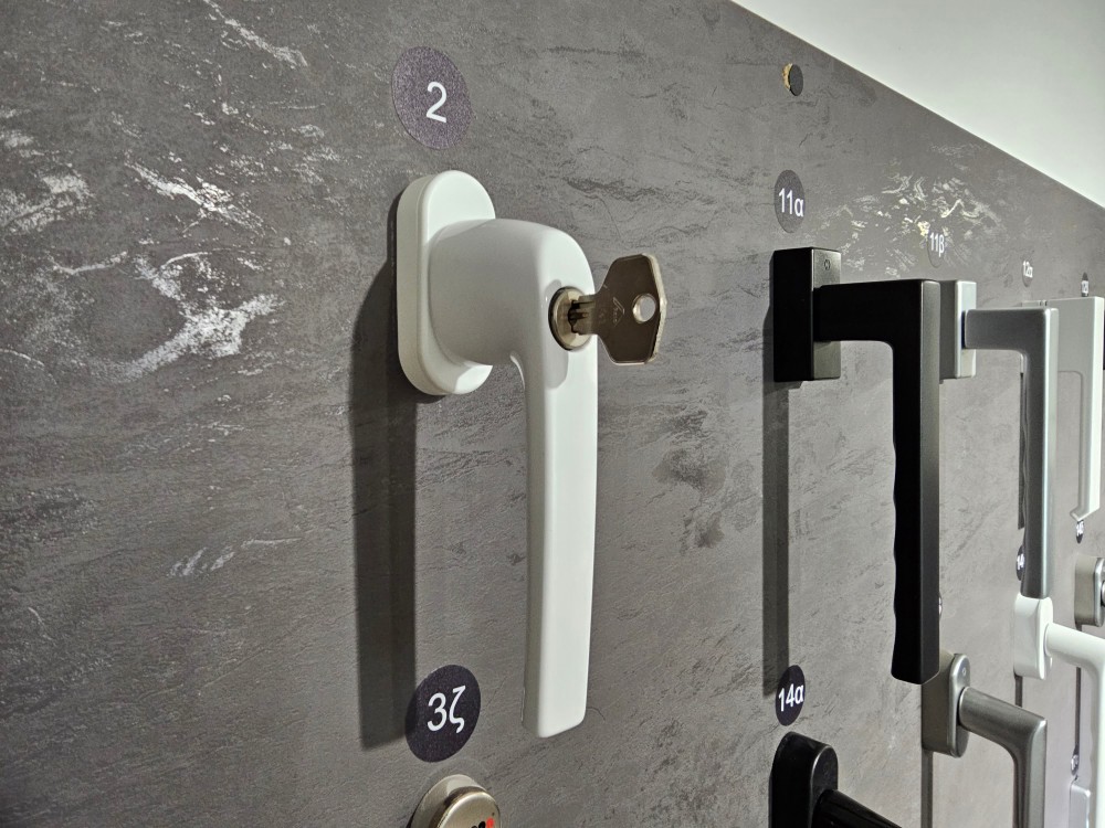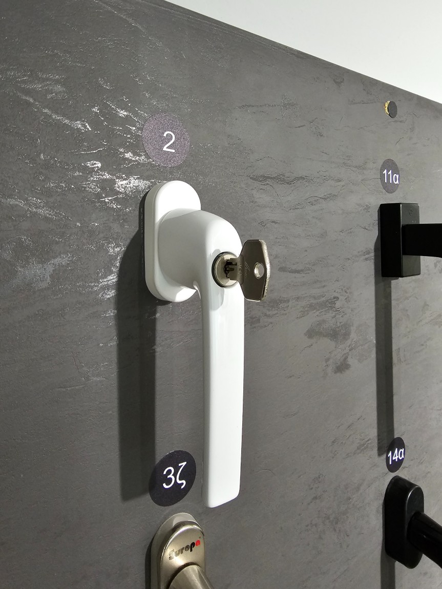 Χερούλι – πόμολο κουφωμάτων (παραθύρων)  με κλειδί για ανοιγόμενα και απλά συρόμενα κουφώματα αλουμινίου. Το χερούλι με κλείδι μας επιτρέπει να ασφαλίζουμε το παράθυρο, είτε κλειστό , είτε σε θέση ανάκλησης, ετσι ώστε να προστατευτόμαστε απο τον κίνδυνο ατυχημάτων (παιδιά, μεγαλά ύψη κλπ.)