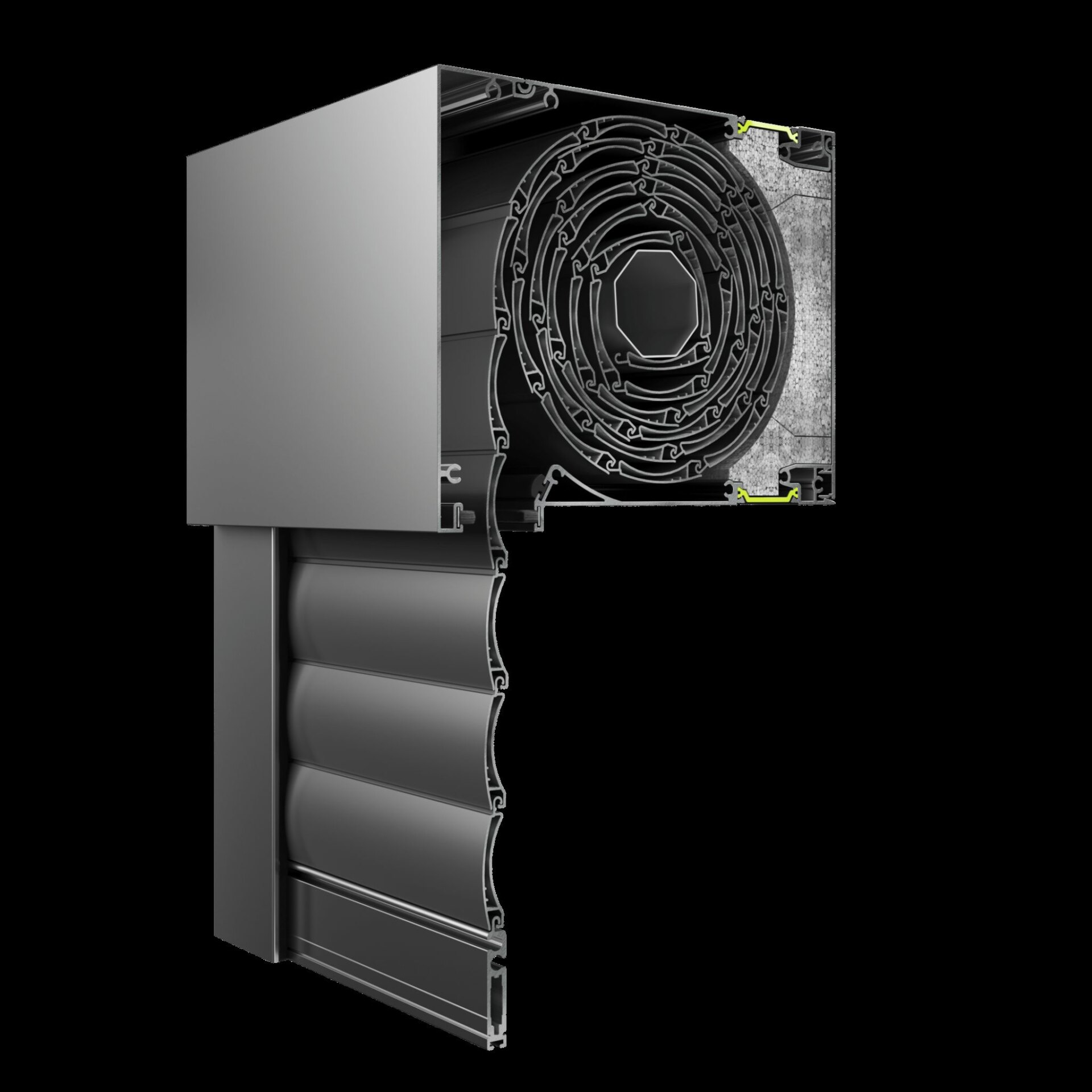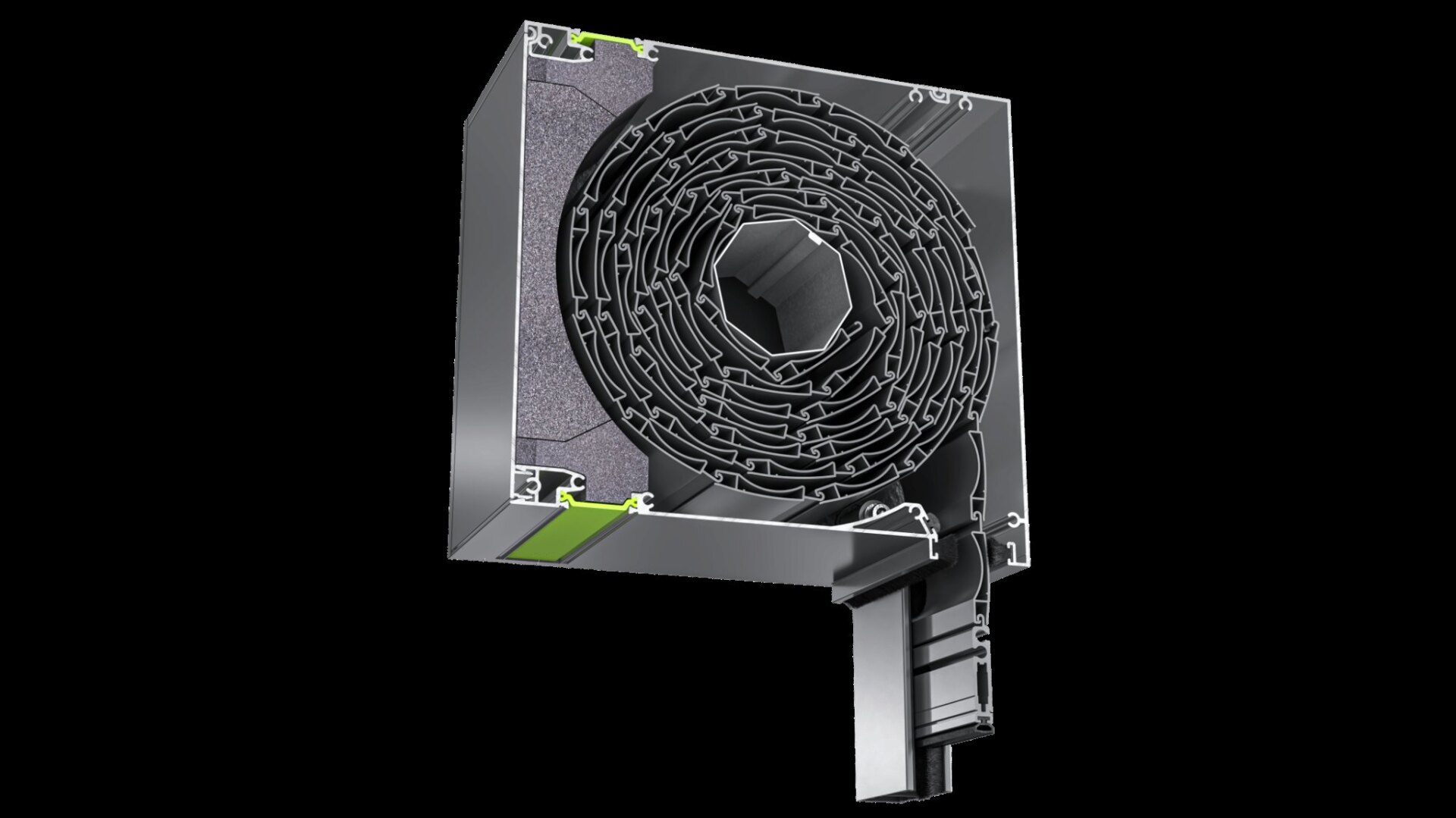 Η ενεργειακή έκδοση ERS 960 Hybrid προσφέρουν θερμοδιακοπή με πολυαμίδια 32 mm και πρόσθετη θερμομόνωση – μονωτικό υλικό NEOCOAT EPS επιτυγχανοντας με αυτό τον τρόπο θερμομόνωση κουτίων ρολού Usb=1.0 – 1.2 W/m2 K.