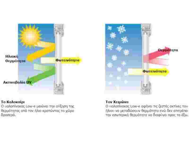 Ουσιαστικά όταν παραλαμβάνεται διπλούς η τριπλούς ενεργειακούς υαλοπίνακες, στον έναν από αυτούς, έχουν τοποθετηθεί στο μέσα μέρος και στο σημείο που δεν μπορούμε να ακουμπήσουμε (διάκενο) , αδιαφανή μεταλλικά οξείδια ( συνήθως οξείδια του αργύρου ) , για να δυσχεραίνεται η μεταφορά θερμοκρασίας από μέσα στο σπίτι προς τα έξω και αντίστροφα και να επιτυγχάνεται εξοικονόμηση ενέργειας. Δείτε περισσότερα (τιμές, τύποι) στο αναλυτικό άρθρο μας ενεργειακά τζάμια.