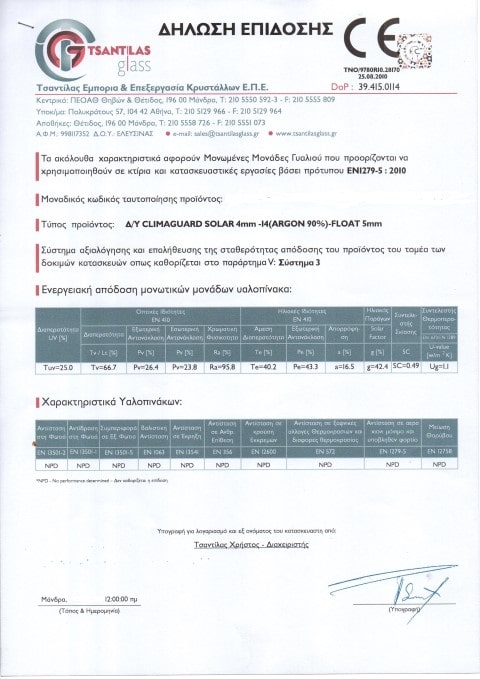 Εγγύηση ενεργειακών υαλοπινάκων και πιστοποιητικά