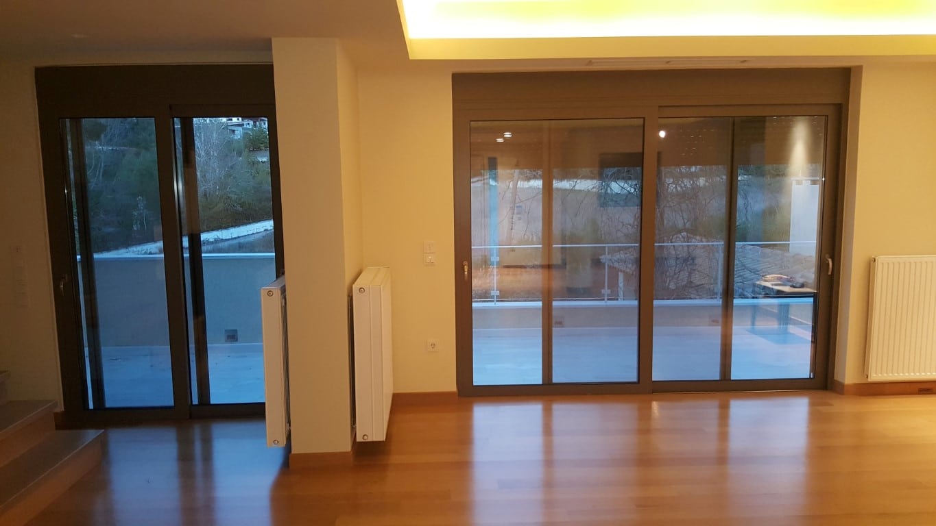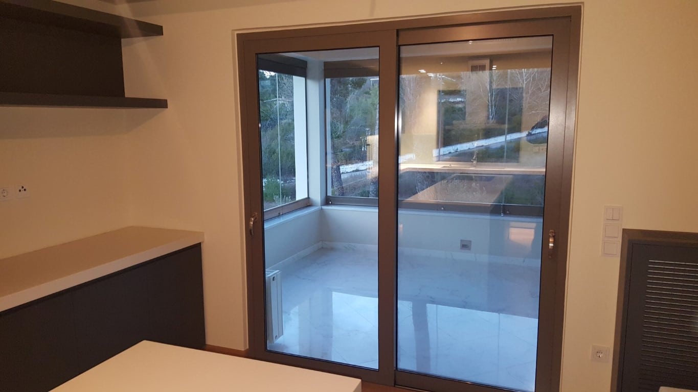 Τοποθέτηση στον Άγιος Στέφανος κουφώματα αλουμινίου θερμοδιακοπτόμενα Europa 5500 – 6000 με ρολά βαρέως τύπου και υαλοπίνακες ενεργειακούς. Το χρώμα των κουφωμάτων είναι ΜΑΤ 7006 . Σε όλα μας τα παράθυρα τοποθετούμε διπλούς ενεργειακούς υαλοπίνακες μαλακής επίστρωσης 4 εποχών . Η σειρά 6000 Hybrid της Europa απευθύνεται σε θερμοδιακοπτόμενα συρόμενα ενώ η 5500 Hybrid σε ανοιγόμενα θερμοδιακοπτόμενα κουφώματα !