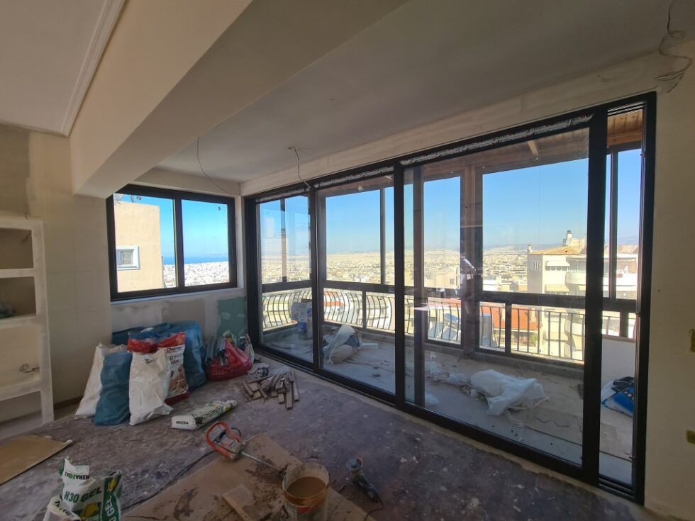 Τοποθέτηση νέων ενεργειακών κουφωμάτων στην Ηλιούπολη κουφώματα αλουμινίου , με την θερμοδιακοπτόμενη σειρά ESS – 47 Prima 8000