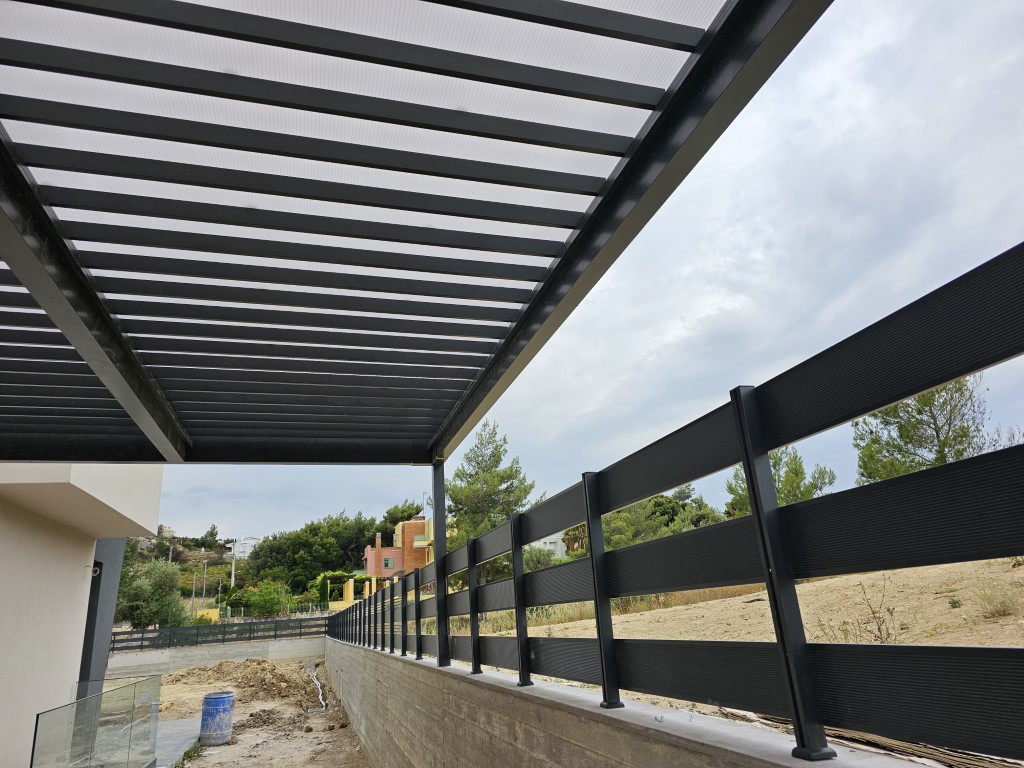 Στο έργο κατασκευαστηκάν γυάλινα κάγκελα καθώς και περίφραξη από κάγκελα αλουμινίου, πέργκολα αλουμινίου καθώς και ένα μικρός αποθηκευτικός χώρος από προφίλ αλουμινίου.