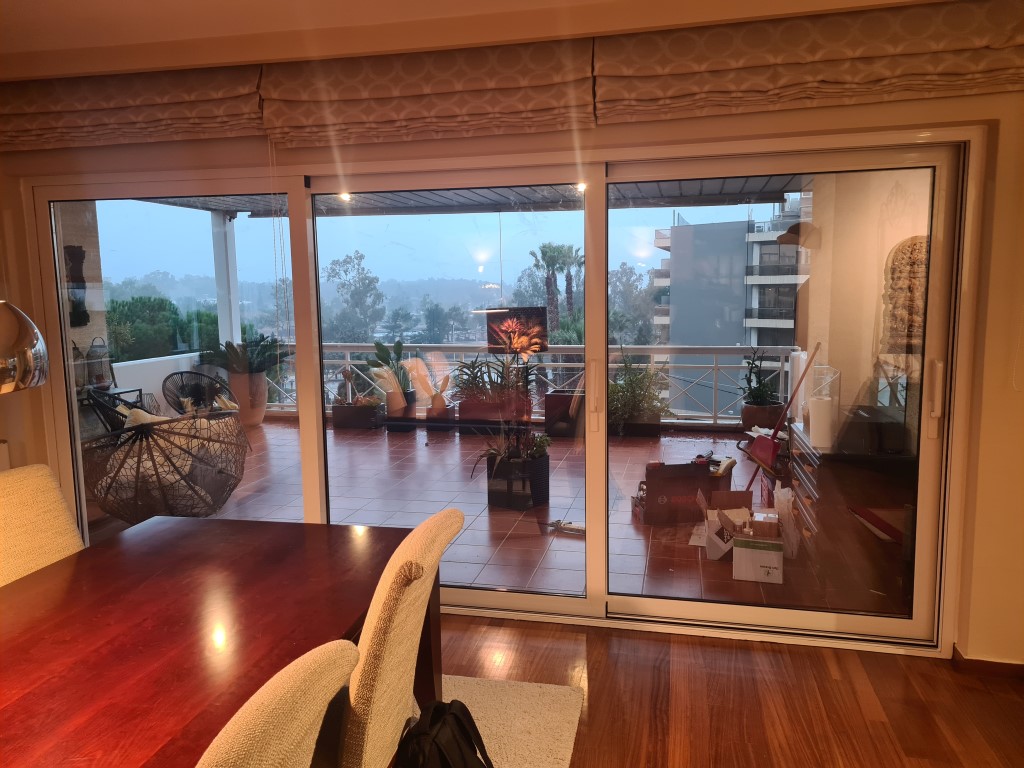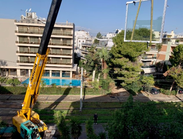 Αντικατάσταση παλαιών κουφωμάτων με νέα ενεργειακά κουφώματα αλουμινίου Άλιμος . Τα τρίφυλλα συρόμενα επάλληλα κουφώματα Άλιμος είναι με θερμοδιακοπτόμενα προφίλ της σειράς ESS – 47 (Europa 47 – Prima 8000) . Τα κουφώματα αλουμινίου Άλιμος έχουν κατασκευαστεί με ανασηκούμενους υδραυλικούς μηχανισμούς με δυνατότητα ανύψωσης έως 400 κιλά ( δείτε την ESS 47 ανασηκούμενα). Τα κουφώματα Άλιμος περιλαμβάνουν ενεργειακά τζάμια ασφαλείας Triplex, 3ης γενιάς, Μαλάκης επίστρωσης, τεσσάρων εποχών με αέρια Argon, ιδανικά για τις κλιματολογικές συνθηκές της περιοχής. Το έργο περιλαμβάνει και τρίφυλλα συρόμενα ανασηκούμενα επάλληλα κουφώματα και δίφυλλά επάλληλα.