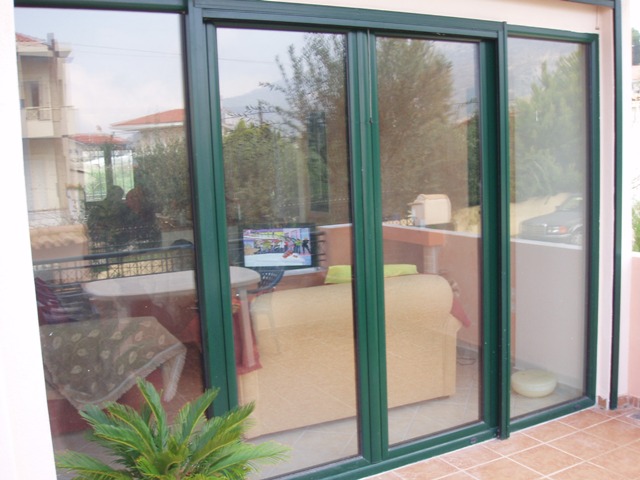 Κατασκευή κατοικίας με νέα κουφώματα αλουμινίου Ν.Μάκρη Αττικής . Τα κουφώματα είναι της σειράς Europa 2000 , σε χρώμα πράσινο RAL 6005 . Με 3ης γενιάς διπλούς ενεργειακούς υαλοπίνακες μαλακής επίστρωσης τεσσάρων ( 4 ) εποχών .