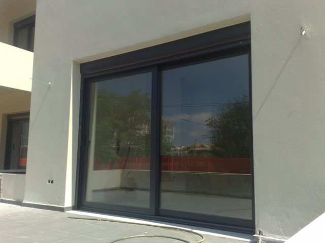 Αντικατάσταση κουφωμάτων Κηφισιά . Η αντικατάσταση των παλαιών κουφωμάτων έγινε με την σειρά Europa 550 χρώματος γκρι ( Ral 7024 ) .
