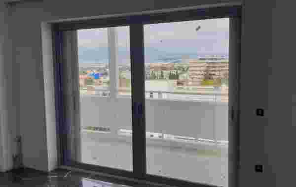 Τοποθέτηση νέων ενεργειακών κουφώματα αλουμινίου Α.Λιόσια . Οι πόρτες και τα παράθυρα είναι με προφίλ  της σειρά Europa 5500 με διπλούς ενεργειακούς υαλοπίνακες μαλακής επίστρωσης 4 εποχών και σε χρώμα  RAL 7040 .