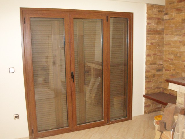 Τοποθέτηση νέων ενεργειακών κουφωμάτων αλουμινίου στο Κρυονέρι Αττικής . Οι πόρτες και τα παράθυρα είναι με προφίλ της σειρά Europa 5500 με ενεργειακούς υαλοπίνακες και σε χρώμα απομίμησης ξύλου ( κερασιά ) . Τα κουφώματα αλουμινίου στο Κρυονέρι είναι με την σειρά 5500 Hybrid με διπλούς ενεργειακούς υαλοπίνακες μαλακής επίστρωσης 4 εποχών .