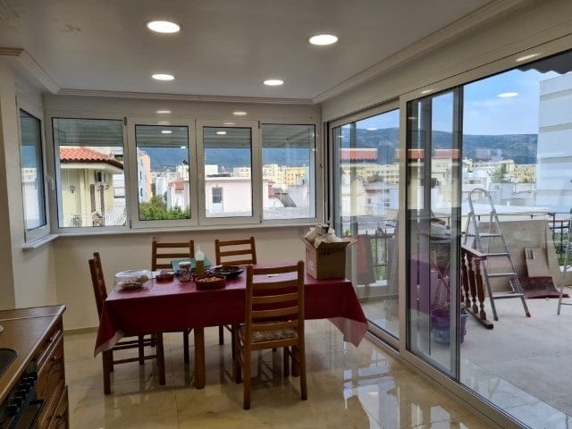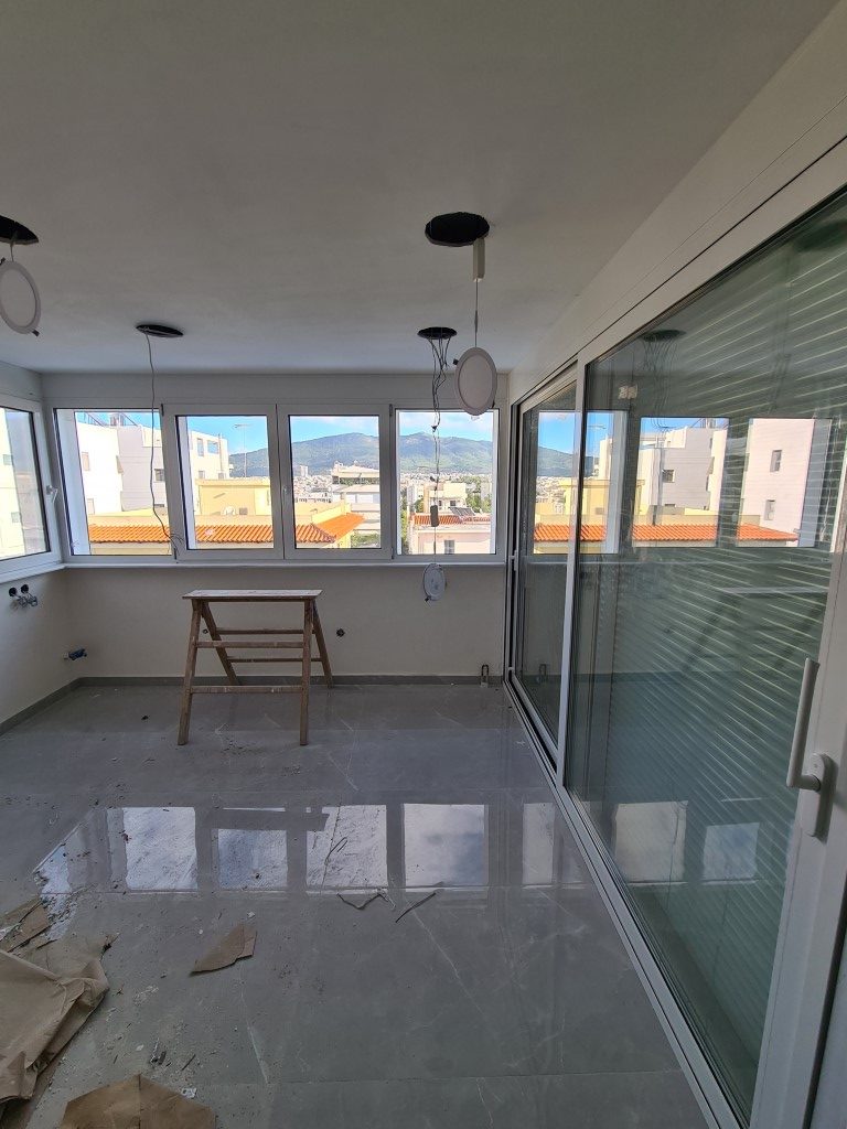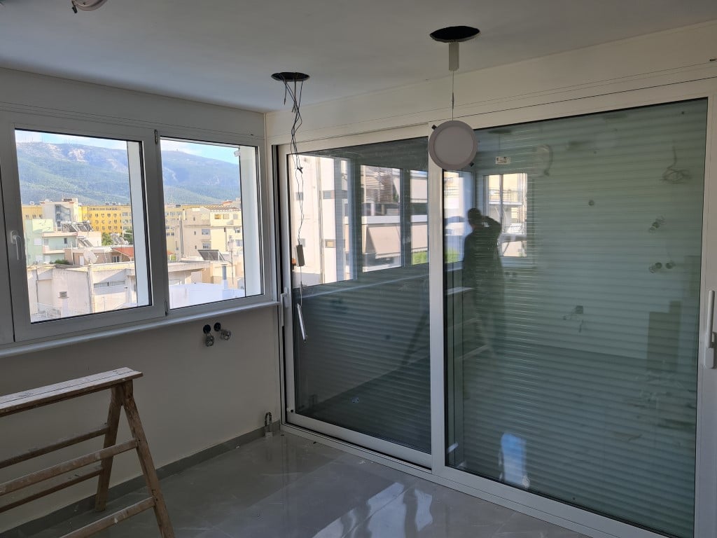 Στα ενεργειακά κουφώματα αλουμινίου και κατά την αντικατάσταση των κουφωμάτων αλουμινίου Europa , έγινε τοποθέτηση γυάλινης πέργκολας στην κουζίνα καθώς και τοποθέτηση ενεργειακών κουφωμάτων στο αίθριο στην σε 2 ορόφους του σπιτιού.