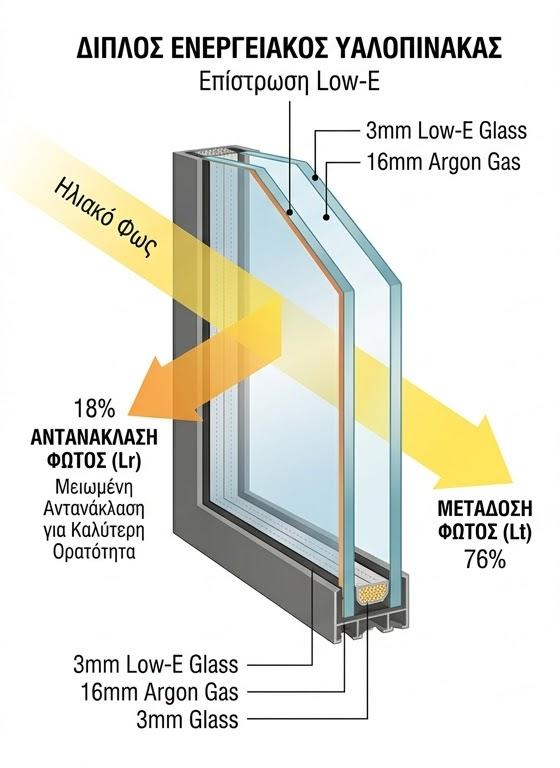 Ρν ή LR Ενεργειακών υαλοπινάκων – τζαμιών (Αντανάκλαση φωτός – Light Reflection)